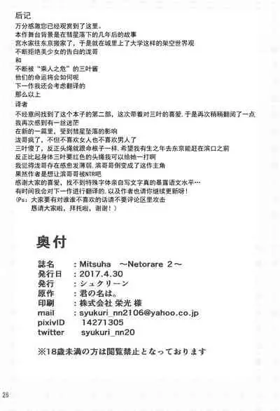 (SC2017 Winter) [Syukurin] Mitsuha ~Netorare~ (Kimi no Na wa.) [English]